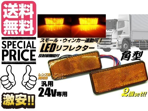 > 24V トラック バス 角型 LED リフレクター 黄色 オレンジ アンバー スモール バックランプ 連動 反射板機能 マーカー メール便送料無料/5