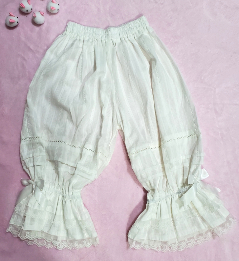 - ロリータ かぼちゃパンツ ドロワーズ 薄手 春秋 ロリィタ ペチパン 選べる4カラー レース リボン レギンス コーデ ゴスロリ ロマンチック