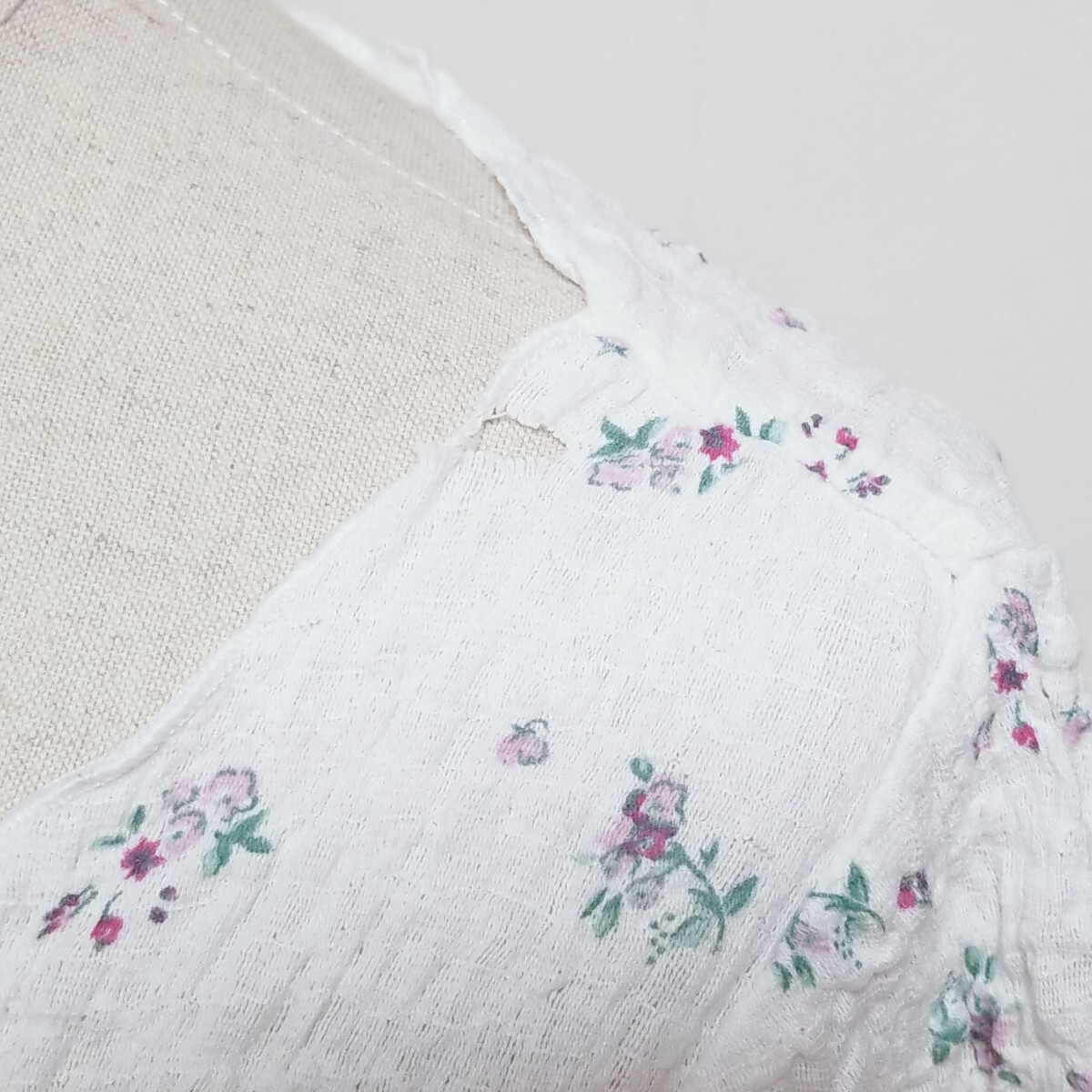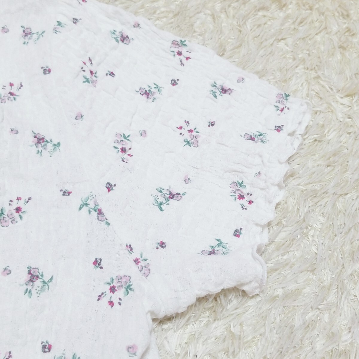 > 送料無料★Y1565 GU ジーユー フラワープリント コンパクトT Tシャツ カットソー 半袖 丸首 レディース XL 大きいサイズ ホワイト 白 花柄