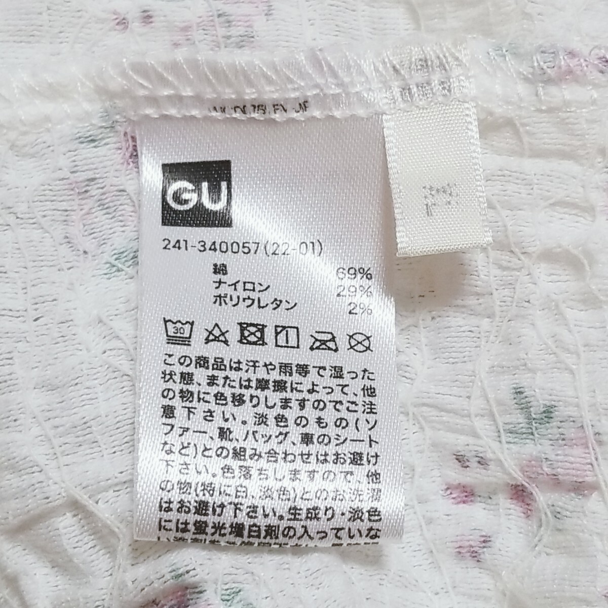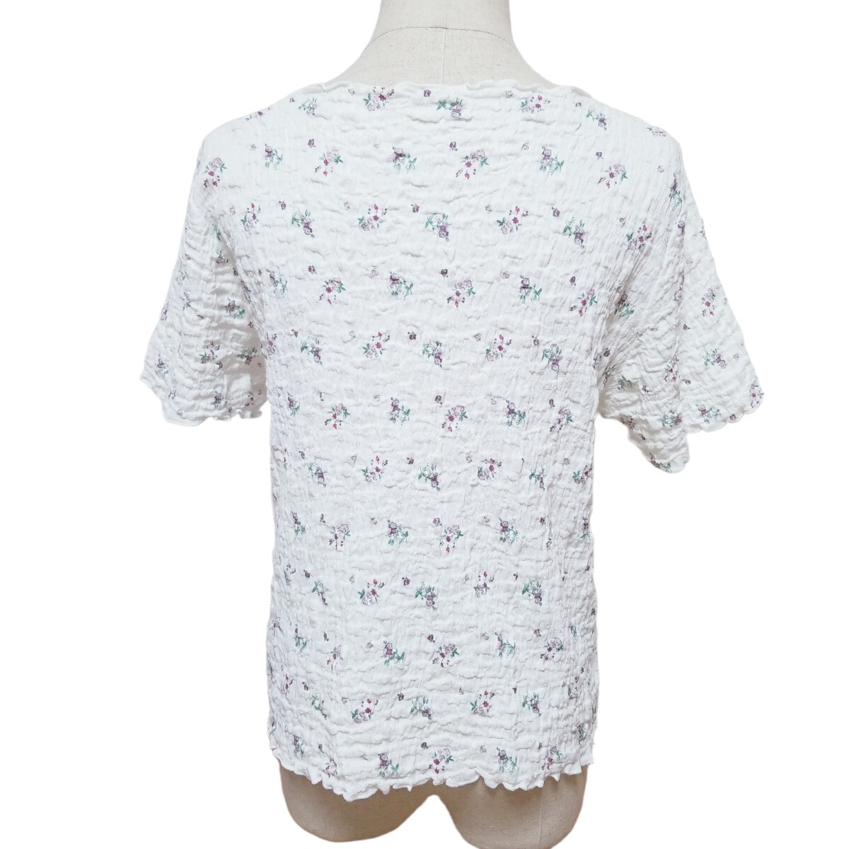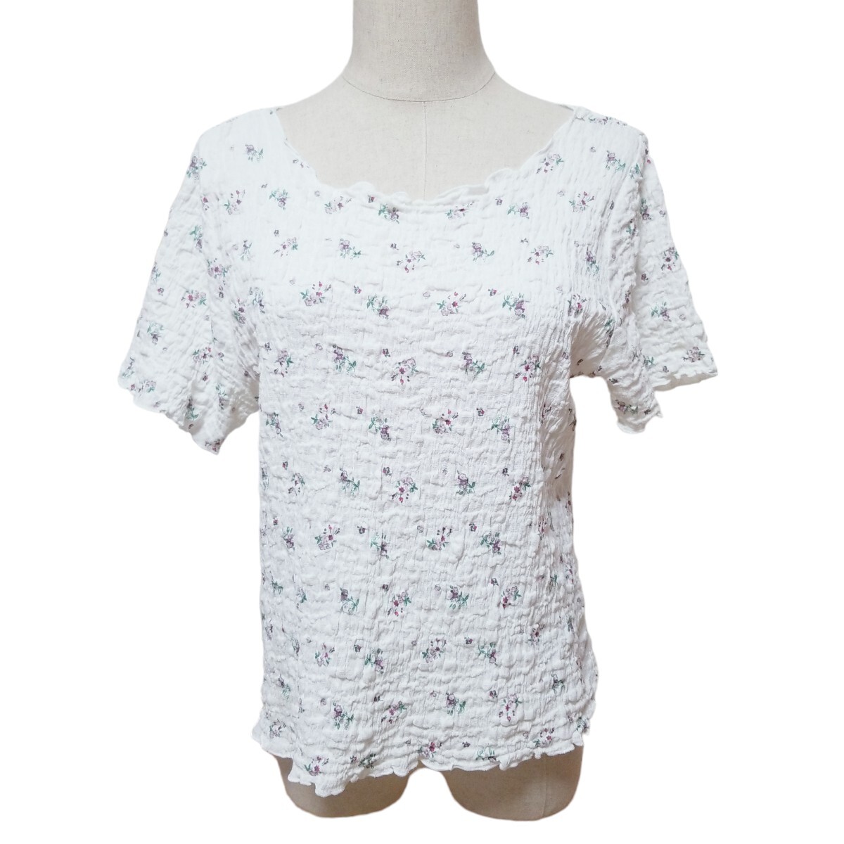 - 送料無料★Y1565 GU ジーユー フラワープリント コンパクトT Tシャツ カットソー 半袖 丸首 レディース XL 大きいサイズ ホワイト 白 花柄