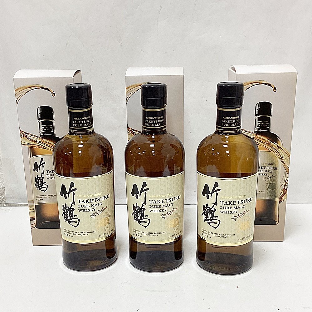 - HO1 未開栓 NIKKA ニッカ ピュアモルト 竹鶴 3本セット 箱付き ウイスキー NV TAKETSURU