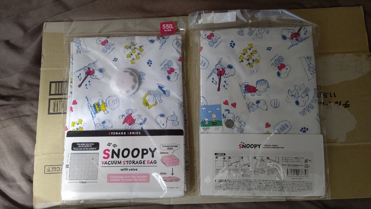 - 新品 2点セット PEANUTS スヌーピー ビーナッツ SNOOPY 未使用 チャリーブラウン 圧縮袋 バルブ付 袋 バキューム ストレージ バック バルブ
