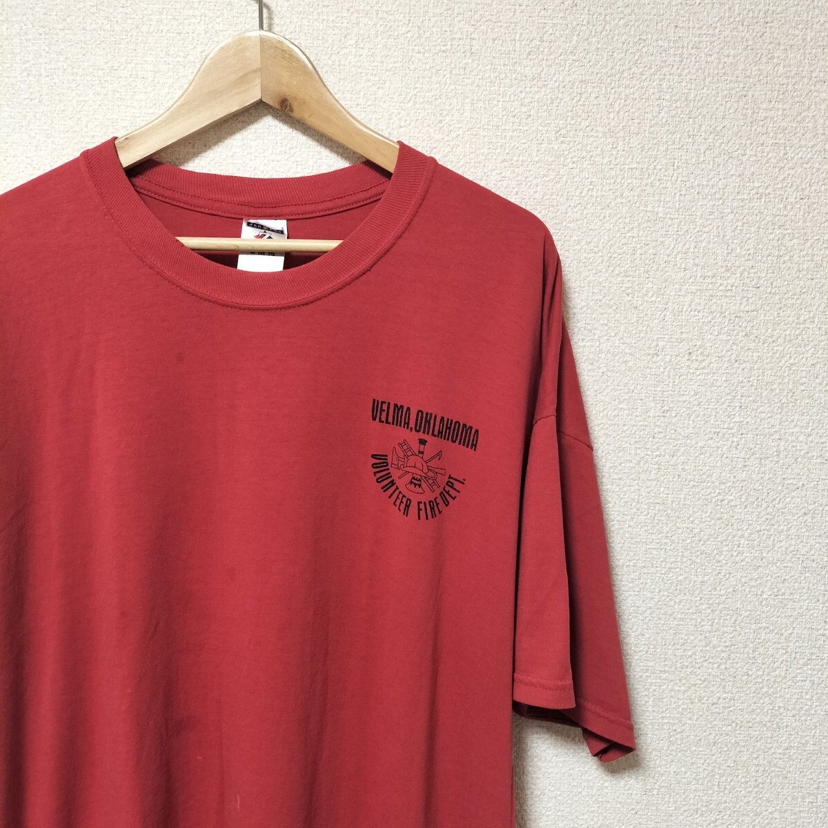 > ☆00s JERZEES ジャージーズ Tシャツ 消防士 消防局 クルーネック 染み込みプリント コットンポリ 赤 ビッグサイズ2X ビンテージ 古着 USED