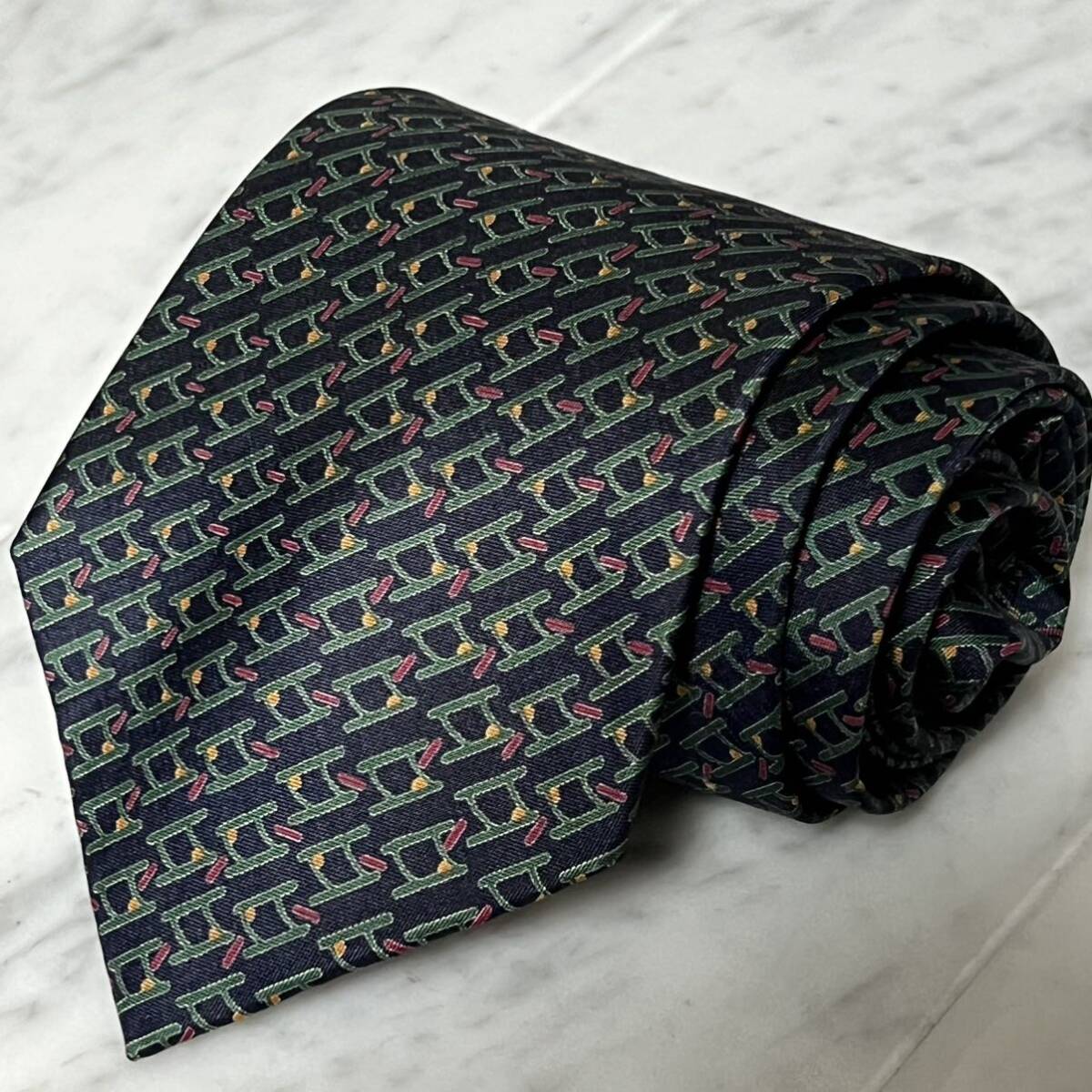 - 【未使用に近い】 770円~ ジムトンプソン ネクタイ ネイビー グリーン パターン柄 (B3)