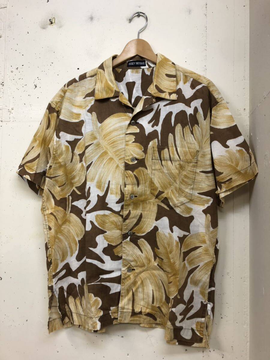 - 90s ISSEY MIYAKE 綿麻 開襟シャツ アロハ 茶 M ビンテージ
