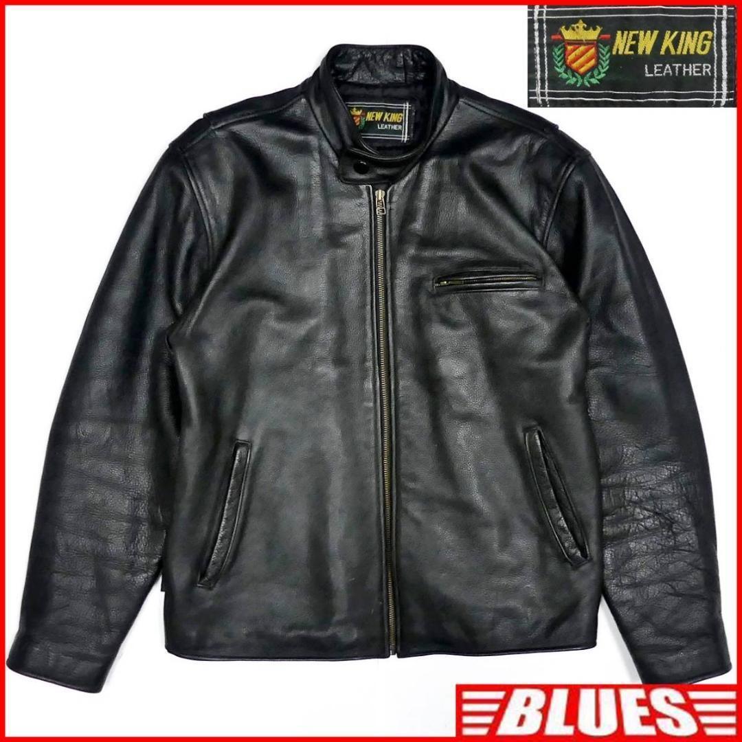 - 即決★NEW KING LEATHER★メンズL位 レザーライダースジャケット ニューキングレザー 黒 本革 シングル 本皮 パンクロック 立襟 ツーリング