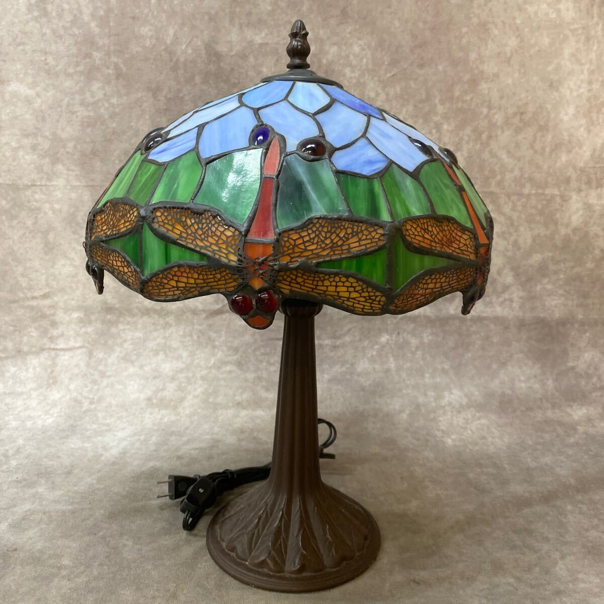 > アンティーク ステンドグラス トンボ 卓上ランプ テーブルランプ ライト 照明 ステンドランプ 高さ約40cm レトロ 雰囲気 当時物
