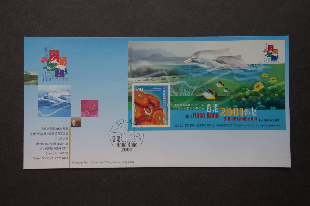 - 外国切手: 中国香港切手「香港2001切手展(4次)」小型シート 貼り FDC(初日カバー)