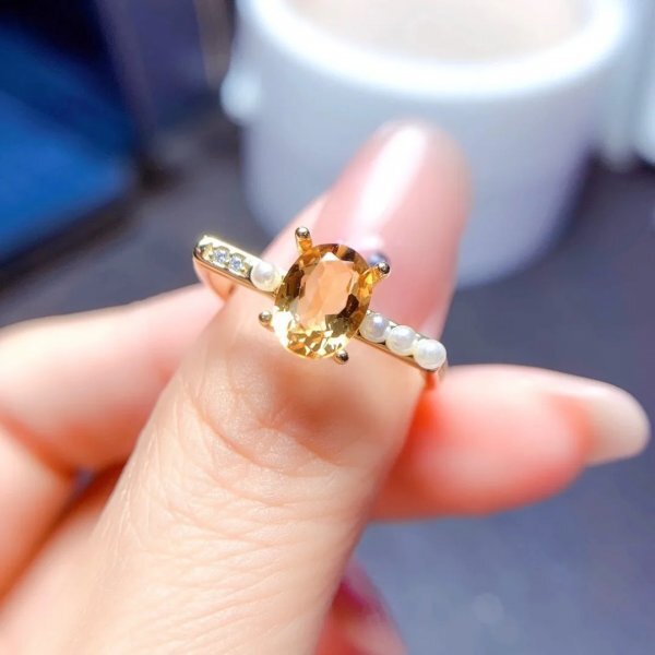- 《証明書付き》天然シトリンリング 925スターリングシルバー 特別なジュエリー サイズ調節可能 aa☆
