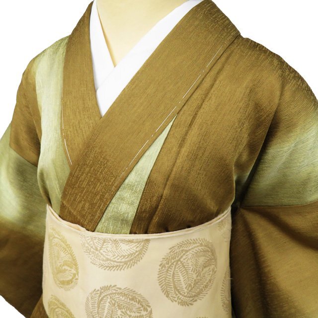 > 小紋 着物 中古 正絹 袷 カジュアル 暈し 墨流し 桑茶色 青朽葉色 身丈158cm 裄63cm M きもの北條 A1048-9