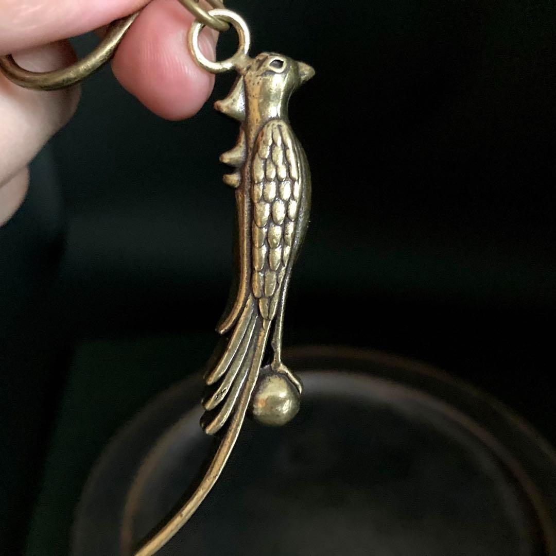 > 154 真鍮 キーホルダー 鳳凰 鳥 ビンテージ 風水 金運 開運 レトロ アンティーク 真鍮製 チャーム アクセサリー パーツ ハンドメイド