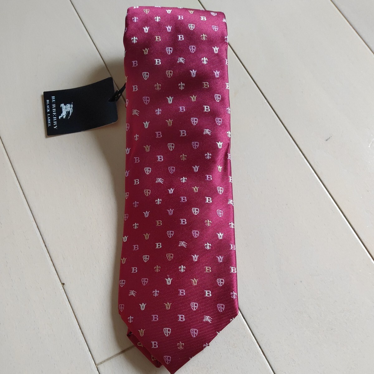 - ※未使用※バーバリー ネクタイ モノグラム柄 シルク100% ワインレッド