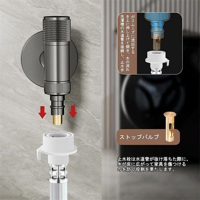 - 洗濯機用水栓金具 露出タイプ・埋込タイプ共通機能 露出タイプ単水栓 逆止弁付 グレー
