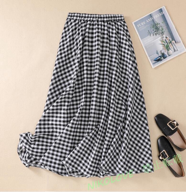 - 新品レディース ボトムス スカート チェック フレアスカート 綿麻 ロングスカート Aライン 大きいサイズ キレイめ LH548