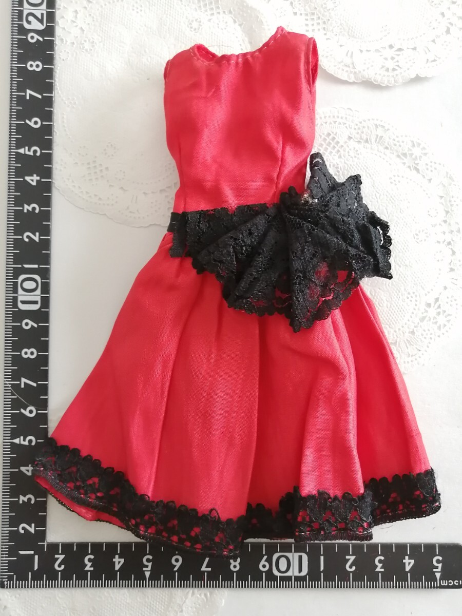 - 4r72 ドール用 TAKARA JAPAN 日本製 赤×黒 レース ドレス ワンピース momoko バービー ジェニー 1/6ドール