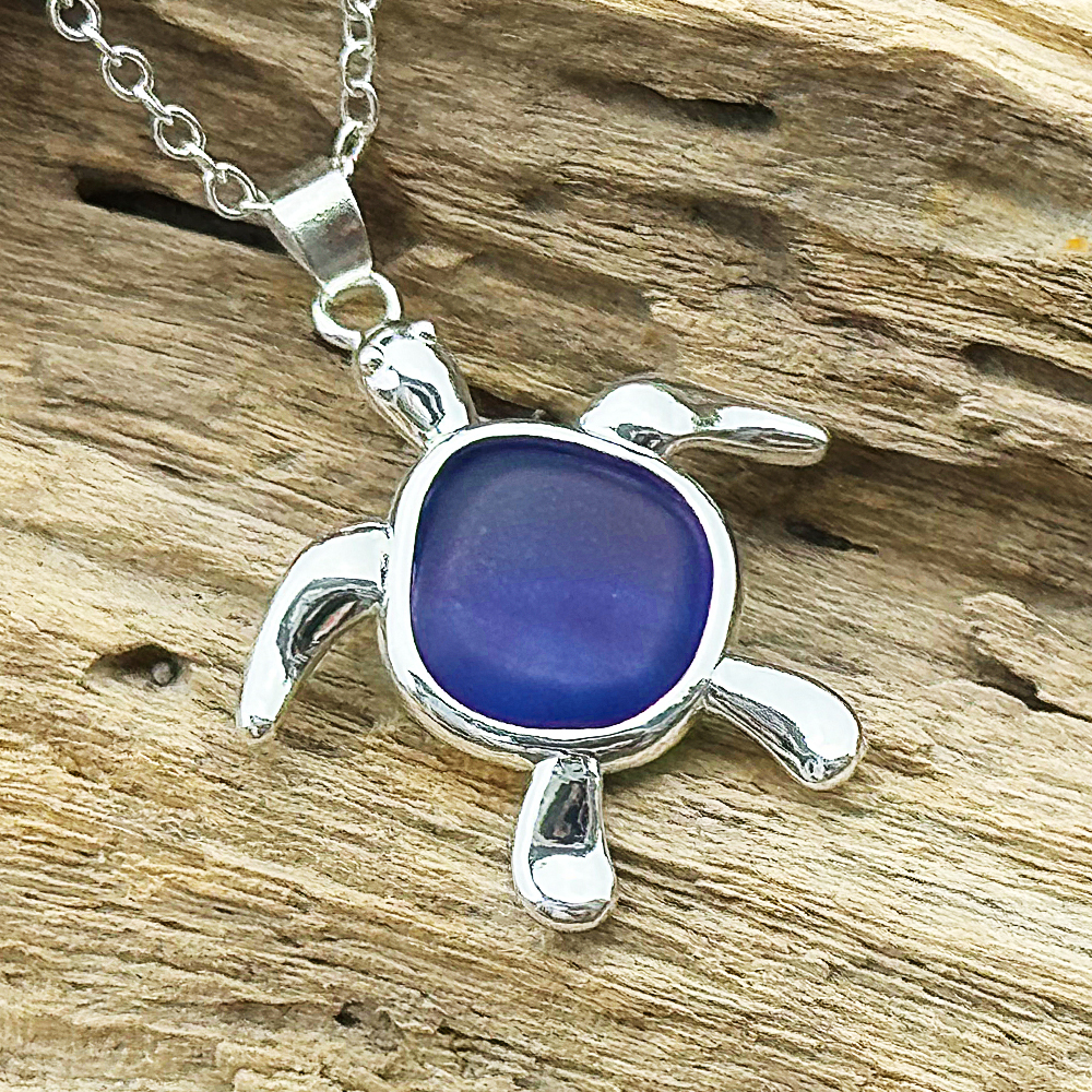 - シーグラスネックレス ハワイアンウミガメシルバーペンダント 彼女恋人へのプレゼントに レディース【コバルトブルー】