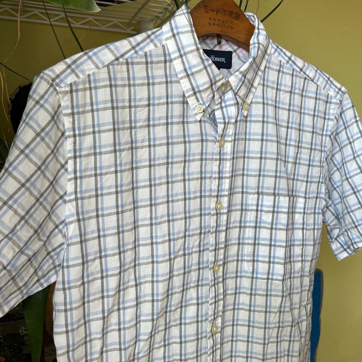 - ニューヨーカー チェック ボタンダウンシャツ 白L