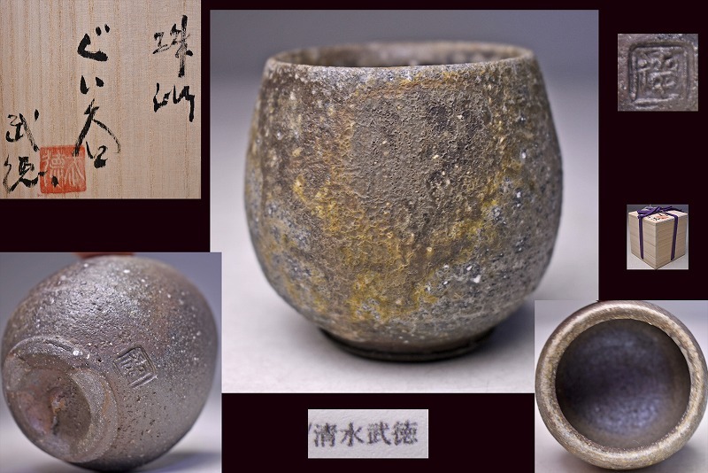 > 清水武徳 ★ 珠洲焼 ぐい呑 ★ 共箱栞 ★ 景色良好 ★ 穴窯焼成 ★ 立命館大学出身 ★ 自然釉灰被 ★ 窯変 ★ 酒器 盃 ★ 六古窯 越前焼