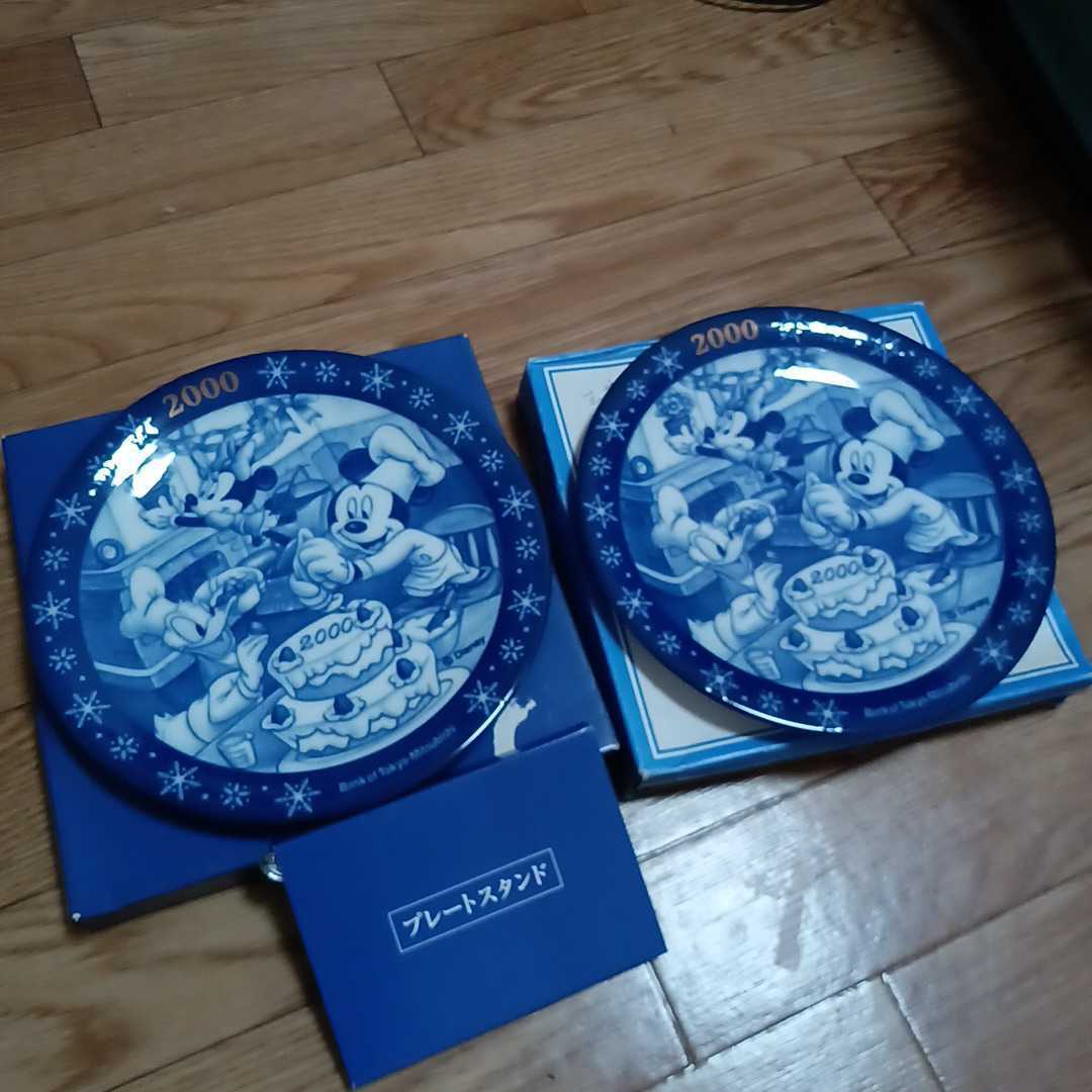 - 2枚セット ミッキーマウスと仲間たちのイヤープレート 2000年 三菱東京UFJ銀行 非売品 未使用あり 江東-0705-うま-IWA-2