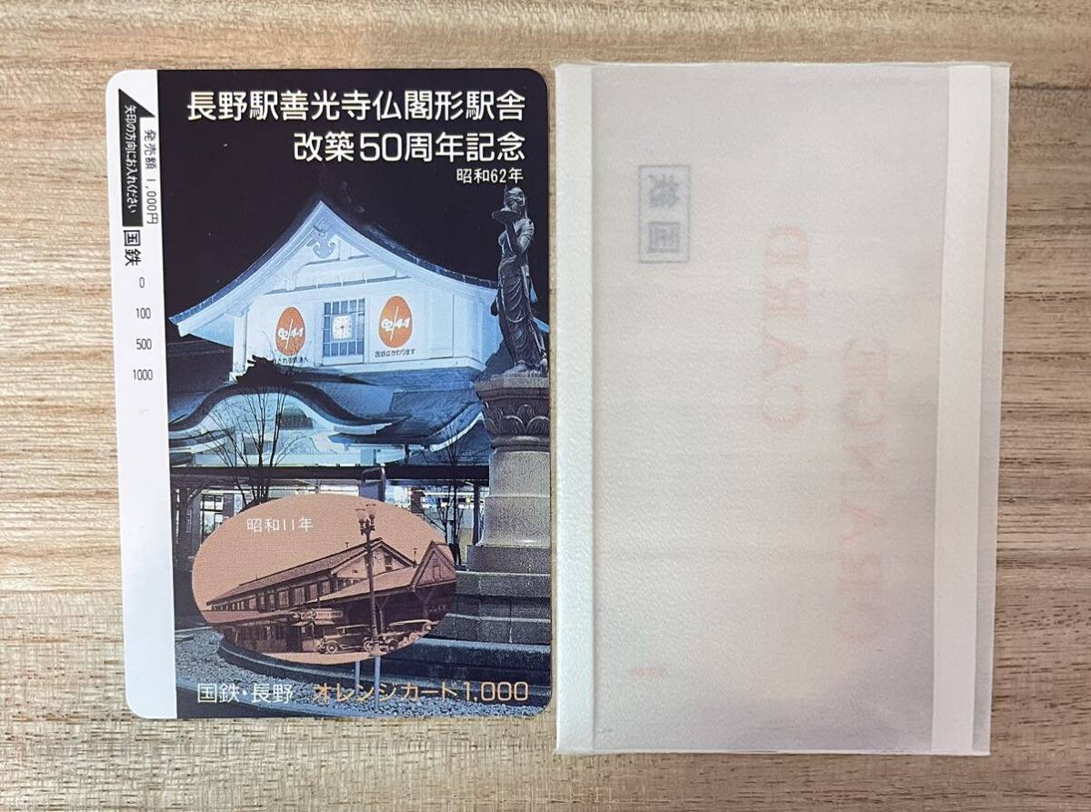 - 未使用 コレクション品 長野駅善光寺仏閣形駅舎 昭和62年 オレンジカード オレカ 国鉄 長野 1,000円 穴なし
