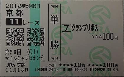 - 単勝馬券 2012年 マイルチャンピオンシップ グランプリボス