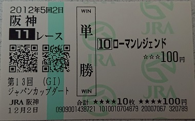 - 単勝馬券 2012年 ジャパンカップダート ローマンレジェンド