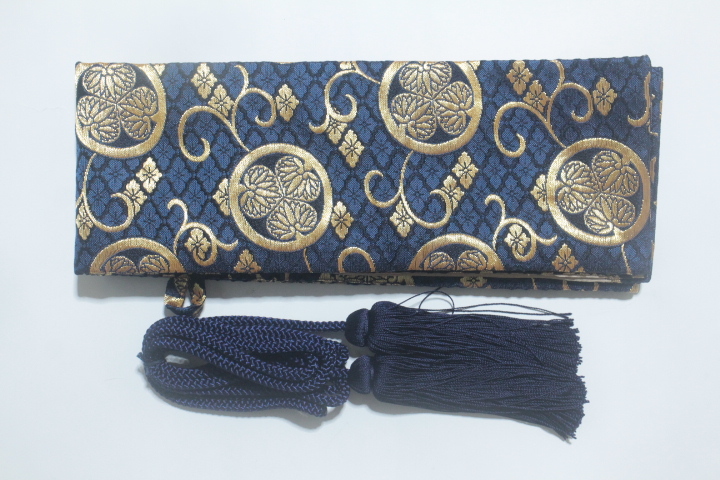 - 長脇差用 葵紋 豪華 金襴袋 白鞘 袋全長100cm×10㎝「白鞘全長:73cm~78cmに適合」+房紐 家紋 三つ葉葵紋 高級 刀袋 刀剣 日本刀 ☆新品