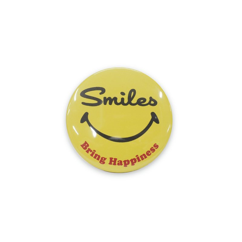 - ハッピー♪ スマイル 缶バッジ 54mm レッド 缶バッチ アメリカン 雑貨 キャップ キャスケット ことわざ 笑顔は幸せを呼ぶ