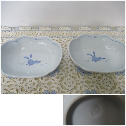 - お皿 2枚 ウサギ 径15.5cm 高さ4.5㎝ ※少々汚れありますが状態よい tm2407-10-3