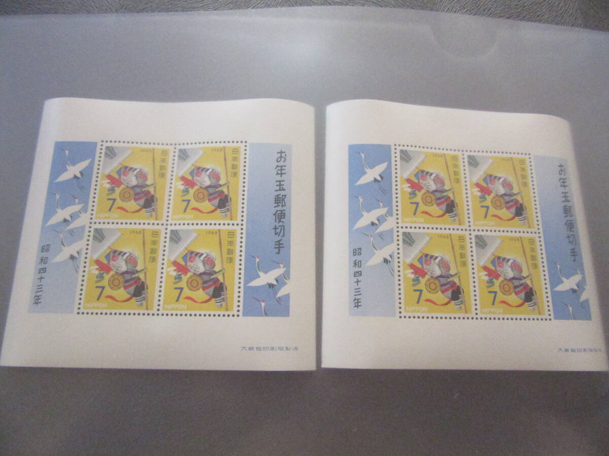 - ★お年玉郵便切手 昭和四十三年 7円×4枚 2シート 未使用★