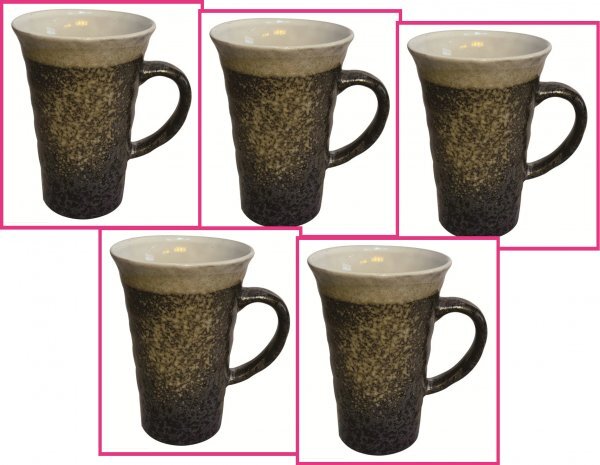- 【送料無料:ビアジョッキ:5個:未使用】★ビールジョッキ★ジョッキ:約400ml:陶器製:No6:のど越し良い:泡持ち良し:マグカップ:白釉流し