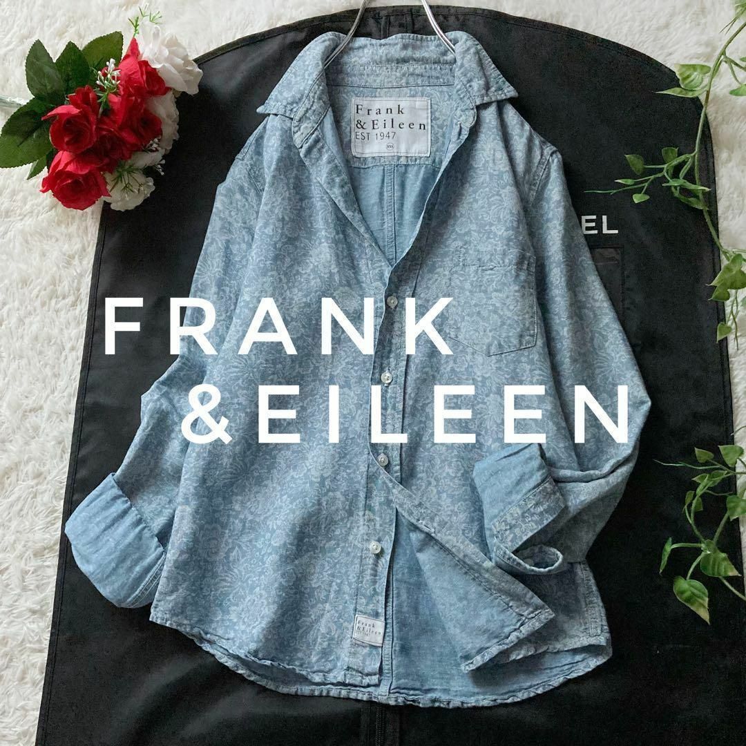 > フランク&アイリーン リネンコットンスキッパーシャツ 長袖 ボタニカル柄 青 XXS=Sサイズ相当 Frank&Eileen