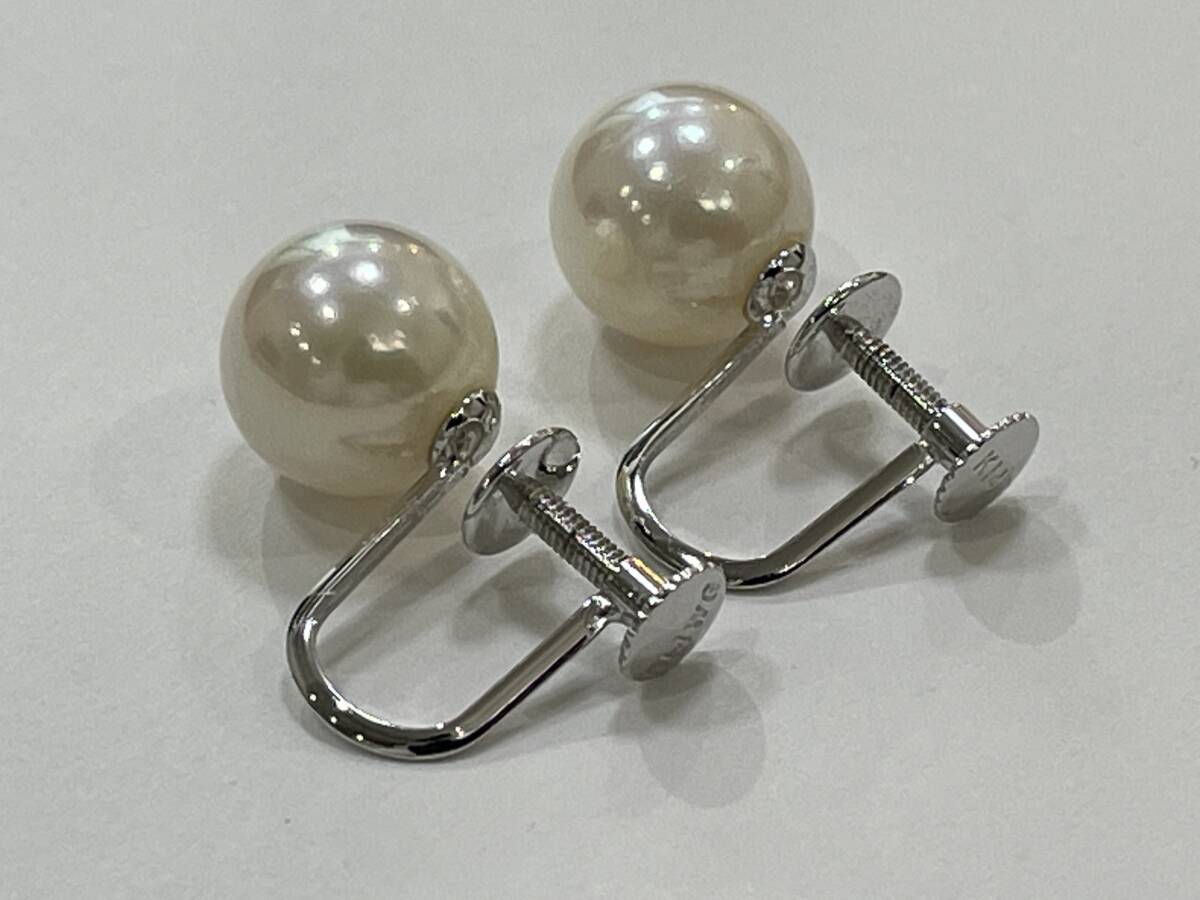 - ★【パール イヤリング 左右ペア 】K14WG (14金ホワイトゴールド) 留め具 アコヤ真珠 ピンク系 8.5mm珠 約2.7g★美品 定形外発送可
