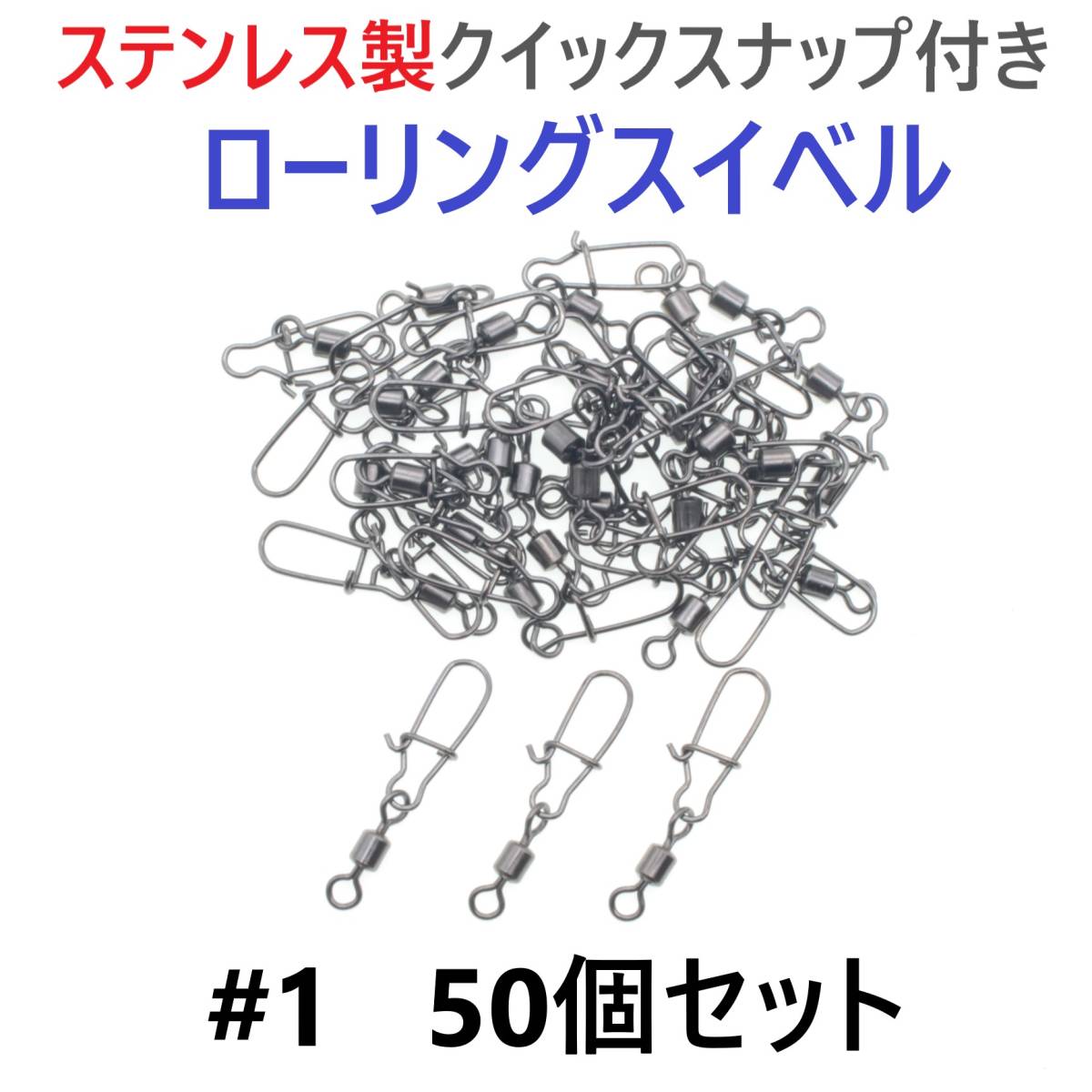 - 【送料180円】ステンレス製 クイックスナップ付き ローリングスイベル #1 (41㎜ 35㎏) 50個セット スナップ サルカン 様々な釣りに!
