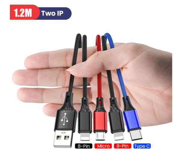 - 送料無料 未使用品 4in1 ダブル Double iOS iphone タイプC マイクロ 充電ケーブル 1.2m