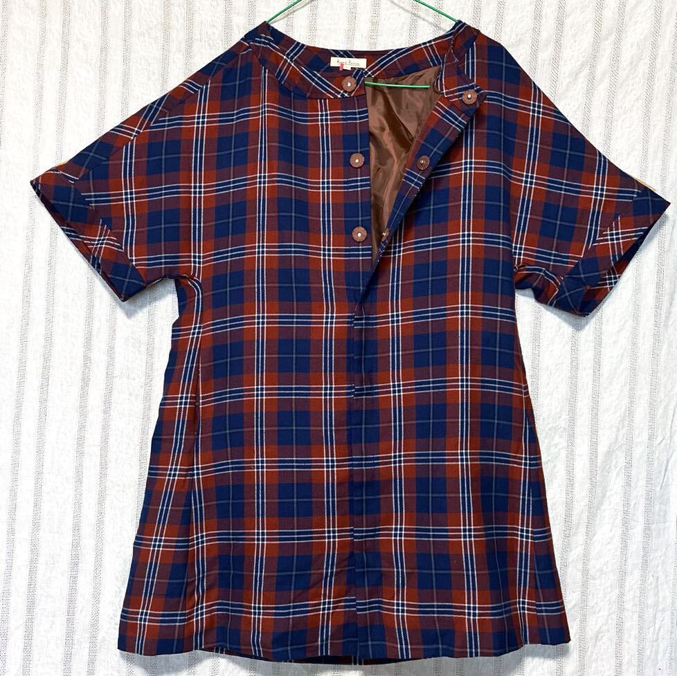 - 新品 未使用☆ROPE' PICNIC ロペピクニック ステッチ風革の隠ボタン チェック コート 38 半袖 チュニック 体系カバー フェミニン 裏地あり