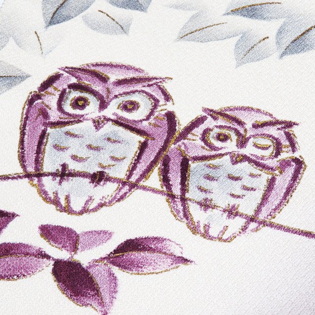 - 袋帯 中古 リサイクル 正絹 カジュアル 仕立て上がり お太鼓柄 フクロウの図 反端付き 葡萄鼠色 薄黄蘗色 きもの北條 A1065-5