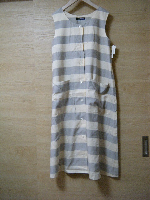 - cacharel キャシャレル ノースリワンピース サイズ9 R8077 未使用タグ付き グレーベージュ横縞 ベルトなし レトロ