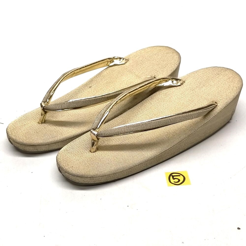 - ⑤ 草履 ゴールド 金色 和装 着物 小物 レディース ぞうり 履物 女性用 中古