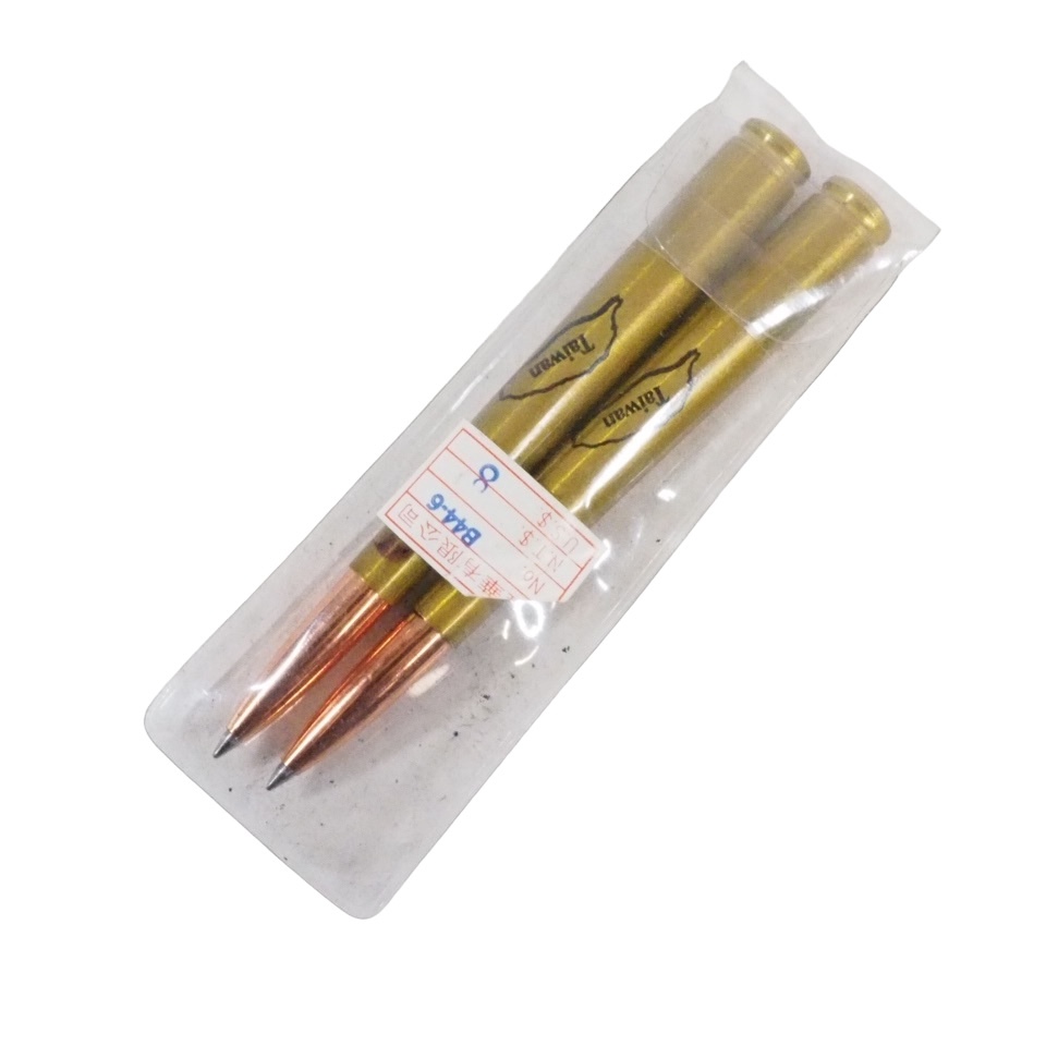 - 台湾製 ビンテージ 銅製 弾丸型小型ボールペン2本セット TAIWANのロゴ付 ケース付 1980年代 KYI607