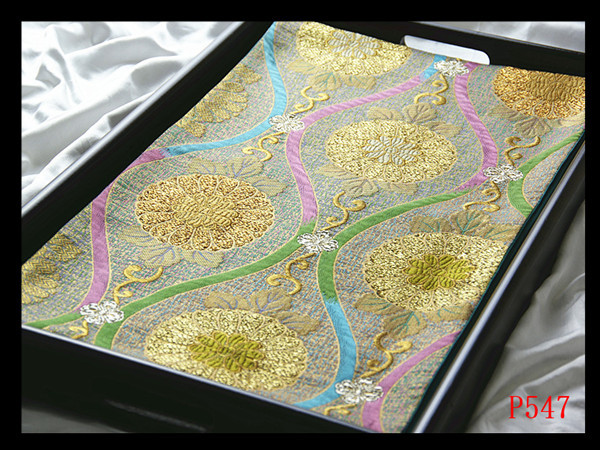 > P547厳選西陣 手織り 振袖可 立涌唐草菊紋 青緑色地 正絹純金糸六通高級美術袋帯 ◇検◇簪着物名古屋帯帯締め