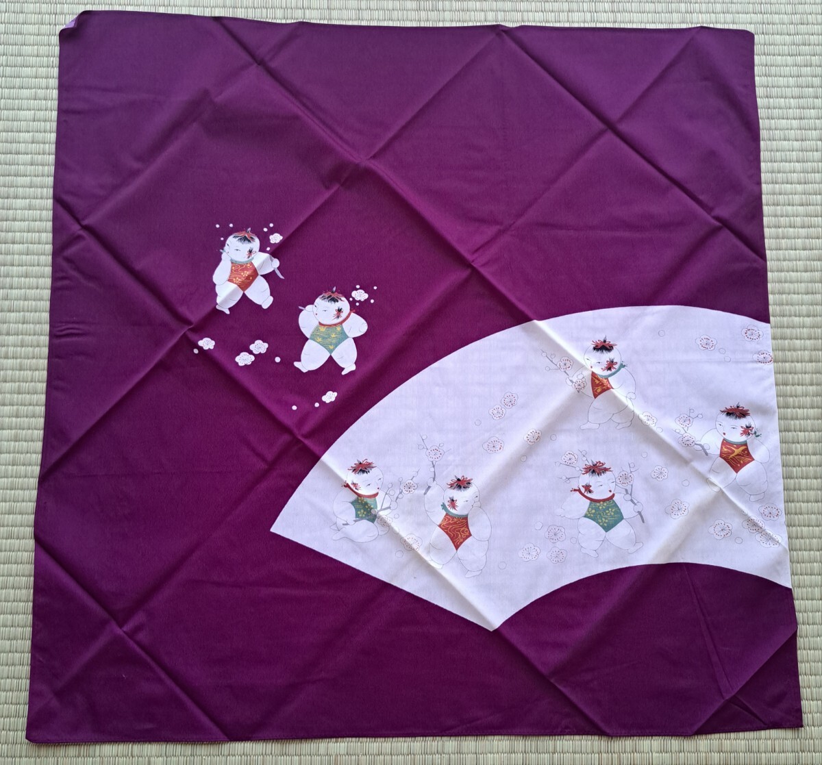 - 中山呉服店 風呂敷 紫 白 子供柄 梅 ナイロン C-KT 6519 和柄 未使用保管