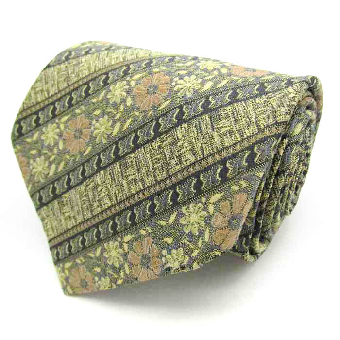 - ゲラルディーニ ブランド ネクタイ ストライプ柄 花柄 リーフ柄 シルク 日本製 PO メンズ イエロー GHERARDINI
