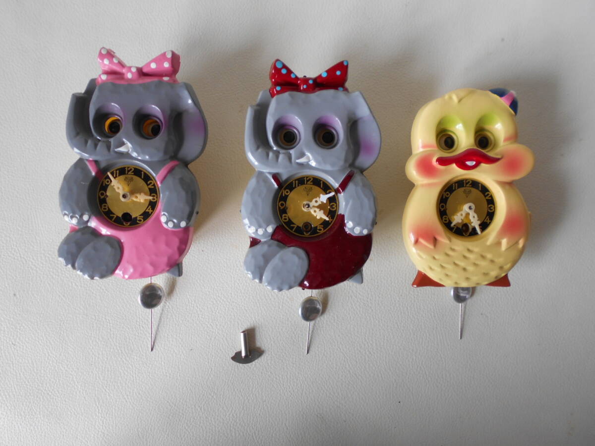 - W / MI-KEN ミケン ゼンマイ 掛時計 3体セット ゾウ 2体 アヒル 1体 ネジ巻き 1個 中古品