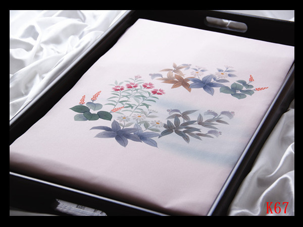 > K67厳選西陣 塩瀬 手描き友禅染め 四季花紋 薄桜色地 気品豊かに 高級美術名古屋帯 新品同様 ◇検◇簪着物袋帯帯締め