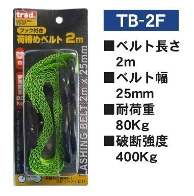 - Trad Sフック付 荷締ベルト 2mx25mm TB-2F ☆荷締めが確実にスピーディー! 荷崩れ防止に!