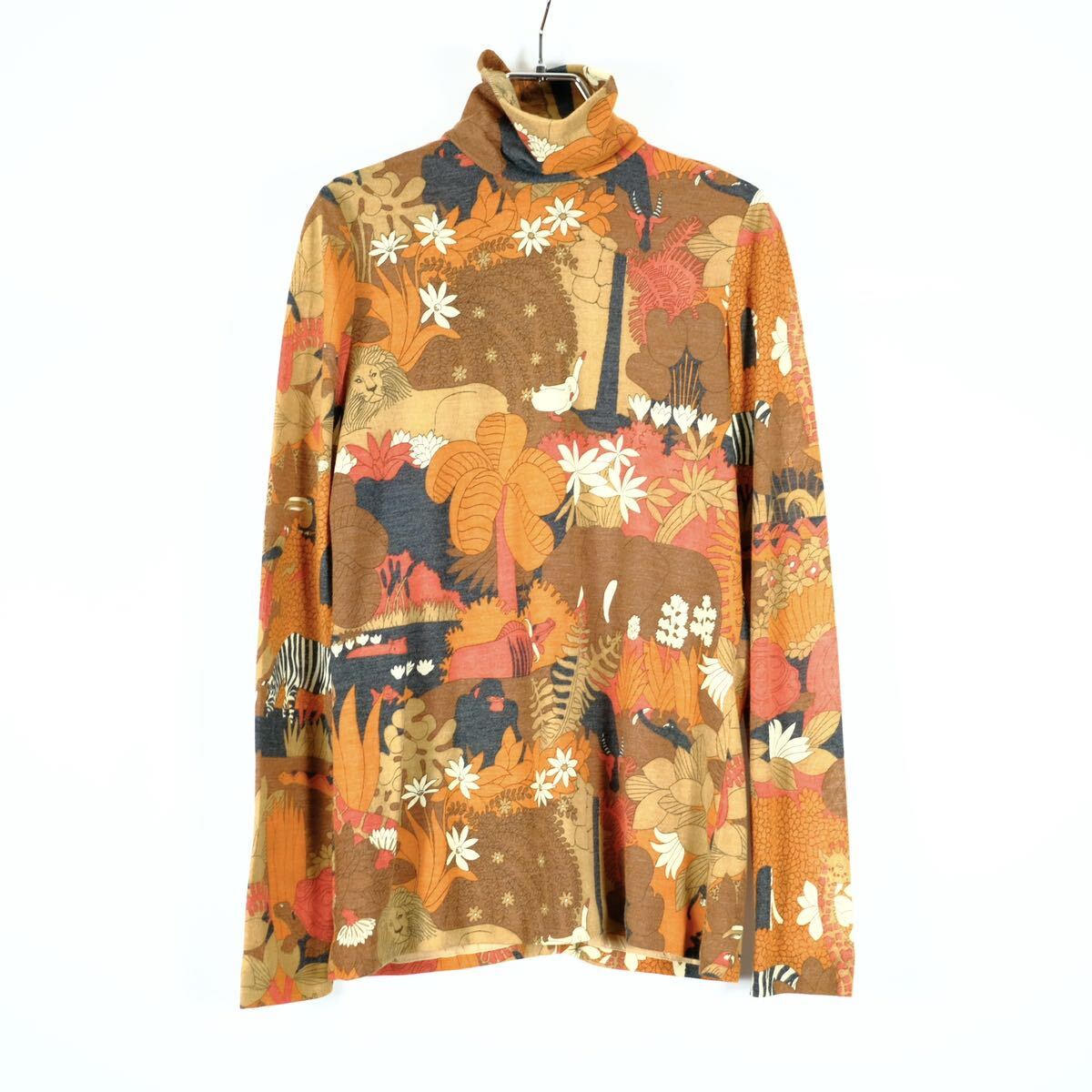 - 1970s ビンテージ 総柄ハイネック ニットセーター カットソー 古着屋 タートル アート デザイン バックジップ Tシャツ