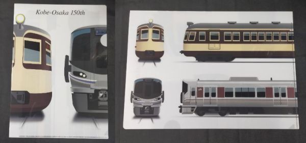 - ◆JR西日本◆神戸大阪鉄道開業150年 A4クリアファイル 52系(関西急電色)&225系「新快速」