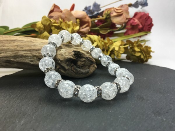 > パワーストーン ブレスレット クラック水晶 12mm 天然石ブレス シルバー 開運 浄化 数珠ブレス メンズ 男性