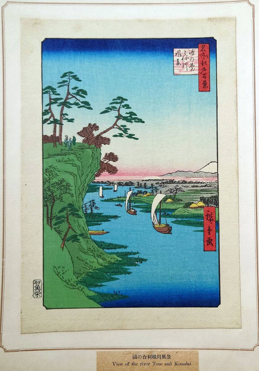- f24080096〇名所江戸百景 彩色木版画 浮世絵 歌川広重 鴻の台とね川風景 複刻昭和年代〇和本古書古文書